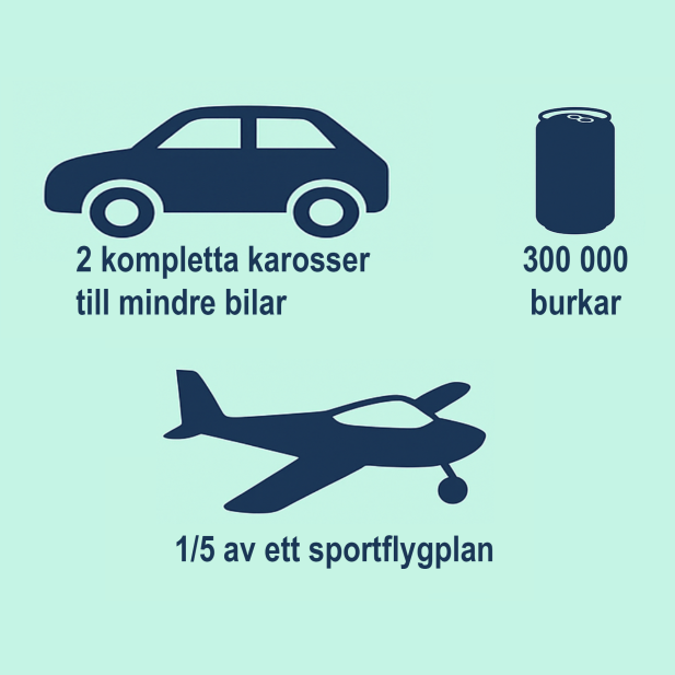 Av 10-11 ton kabelspill kan ungefär 4 ton aluminium återvinnas. Av det kan man till exempel tillverka 2 kompletta karosser, 300 000 burkar eller 1/5 av ett sportflygplan.